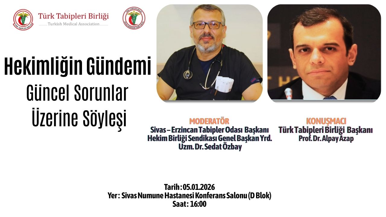 “Hekimliğin Gündemi: Güncel Sorunlar Üzerine Söyleşi” başlıklı etkinliğe tüm hekimler, sağlık çalışanları ve ilgilenen herkes davetlidir.